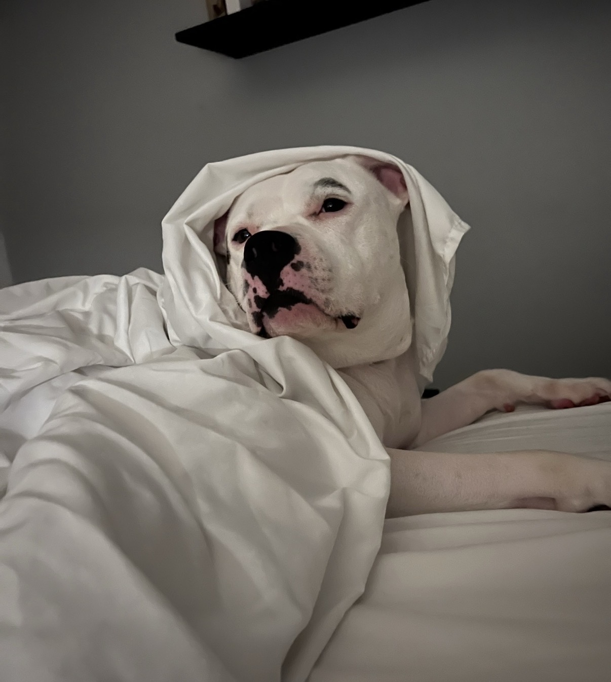 At first glance, she’s a little intimidating — all muscle, confidence, and that “don’t-mess-with-my-human” swagger. But give her a few minutes (and maybe a back scratch or two), and she’ll melt into you like butter on toast. She loves nothing more than curling up beside her person, preferably under the covers, head on a pillow like the world’s most affectionate roommate. Her mornings begin with a stretch, a yawn, and a nudge that says, “Hey, I’m ready for breakfast… and also, you’re my favorite person in the world.”