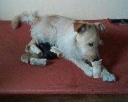 We have a 9 year old dog and lost a golden doodle a year ago to cancer. The older dog missed her companion, so we adopted Scruffy. He is aggressive around our older dog when there is food around. He is very protective of his bones, and can be very vicious with the older dog. We feel bad for our other dog, who is quite nervous and scared of his aggression. We feel he would do best as an only pet. He has so many good qualities.