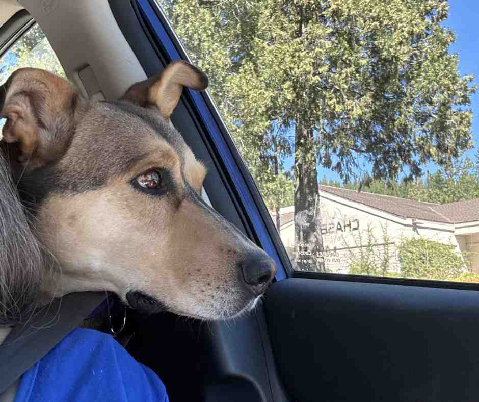 She is a fantastic hiking buddy, (and does not bark or challenge bears) and might be good at nose work competition, some day. She loves people and car rides and adventure.