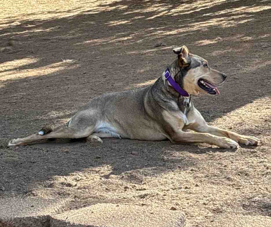 Daisy is athletic and brilliant, ready for a home with secure fencing so she can stretch her legs and run safely. She’s the queen of tug-of-war (extremely dramatic growls, zero teeth on fingers). She thrives on scent games and puzzle toys and would probably ace nose-work competitions if someone wanted to explore that path — though she would also be perfectly happy just being someone’s hiking bestie, couch companion, and loyal heart-dog.