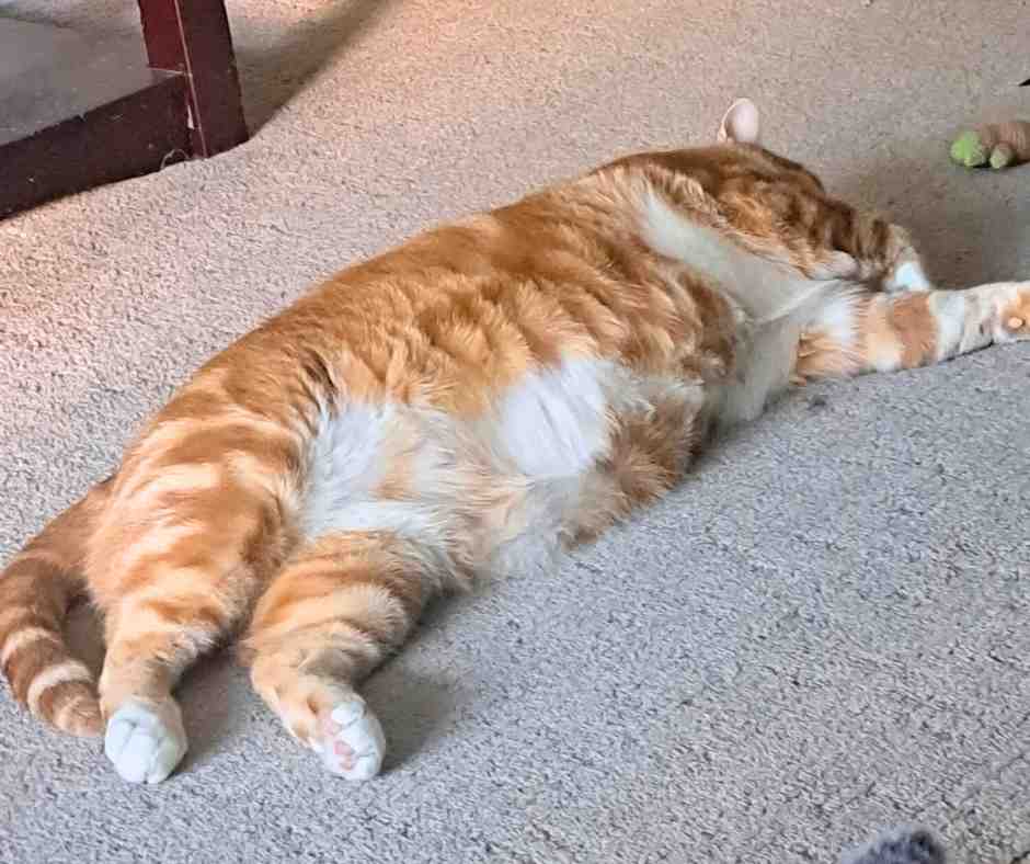 He’d thrive with someone who enjoys closeness… someone who wants a companion, not just a pet. Someone who appreciates a good cuddle, a warm presence, and a cat whose heart is just as big as his belly.