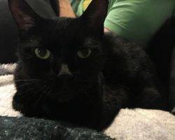 I am a gorgeous black and white cat with a short, silky coat, gorgeous green eyes and a very sweet and affectionate personality. I am just 12 years young, very healthy, spayed and microchipped. I get along well with dogs, and enjoy meeting new people. I am not a good choice for small children. I LOVE to cuddle and knead your tummy!