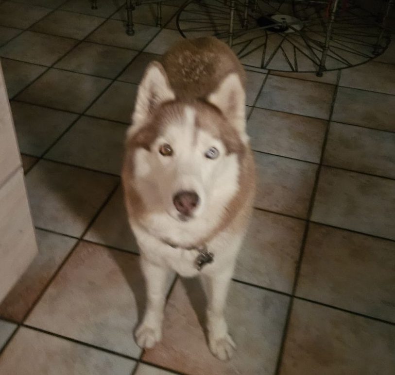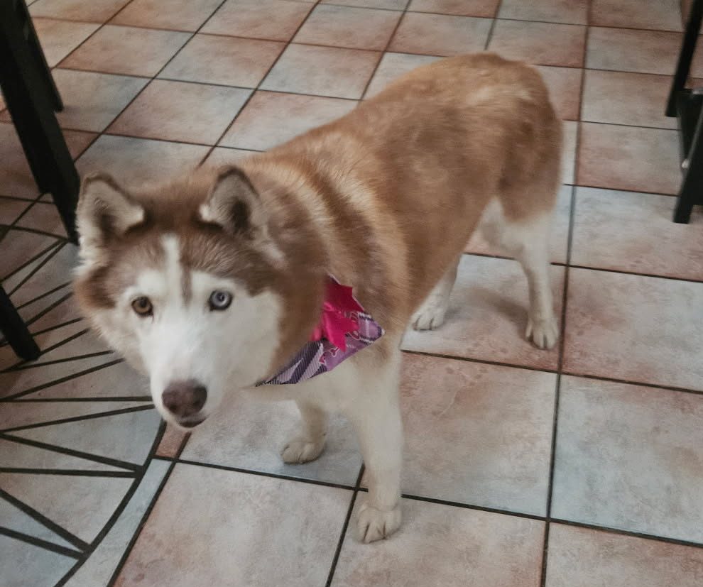 If loyalty had a face, it would look exactly like Racie’s — those soulful, mismatched eyes that seem to ask, “Are you my person?” She’s the kind of dog who doesn’t need to make noise to be noticed; she simply is, in the calm, dignified way only an old-soul Husky can pull off.