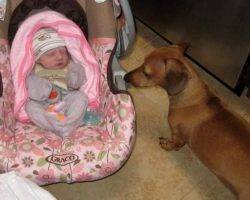 When my daughter was born Stanley seemed very unsure of her but they have since become great friends. She often brings home things she makes at school for him. As a baby he was always very protective of her.
